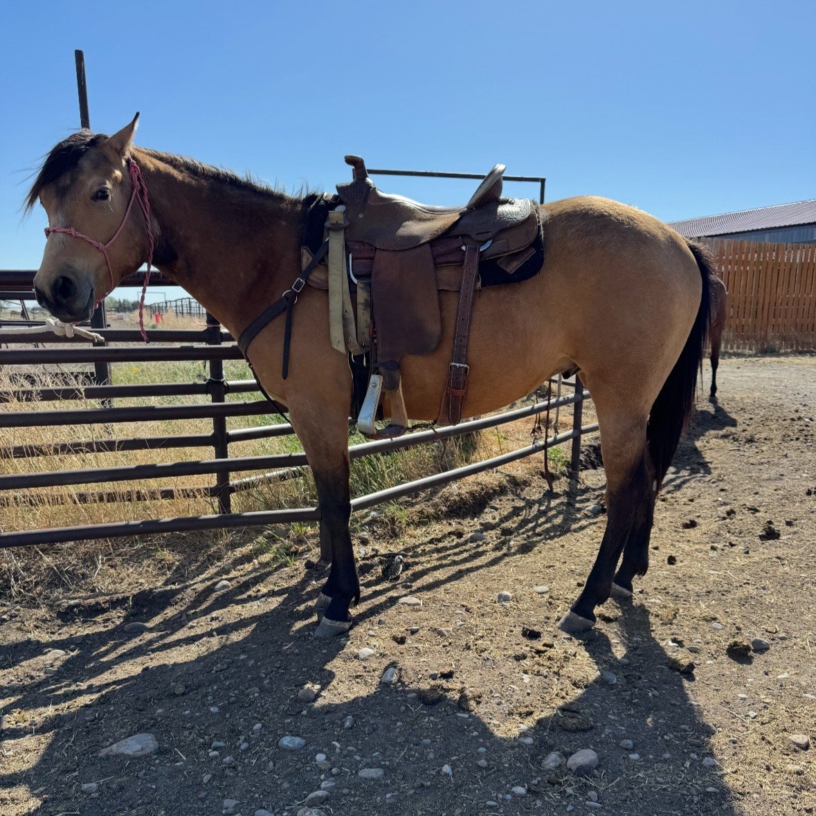CISCO GREAT START TO HIM, REALLY KIND SWEET IN YOUR POCKET TYPE OF HORSE. SMALLER LEGS SO HE HAS A SPEEDY SMOOTH TROT AND A VERY SMOOTH LOPE. HE IS A BIT QUIRKY AT TIMES AND WILL SHAKE HIS HEAD IF HE’S NOT LIKING SOMETHING. NO BUCK NO BOLT AND HAS THE POTENTIAL TO BE AN AMAZING RANCH HORSE. HE IS INTRODUCED TO THE ROPE AND MOVES GOOD OFF LEGS. BEST SUITED FOR AN EXPERIENCED RIDER HOWEVER HE HAS A TON OF POTENTIAL TO BE A MOUNT ANYONE CAN EVENTUALLY RIDE. I HAVE HAD TEENAGERS RIDE HIM BUT HE IS STILL IMMATURE. HE LOADS AND TRAILERS AND IS FAIRLY DECENT WITH HIS FEET. HAS A GOOD STOP AND NECK REINS OK. REALLY NICE SPEED TRANSITIONS AND HAS A TON OF PERSONALITY. I HAVE RIDDEN HIM OUT ALONE ON TRAILS AND HE WOULD ALSO EXCEL AS A SOLID TRAIL MOUNT. HE WILL PICK YOU UP FROM THE MOUNTING BLOCK OR STUMPS AND DROP YOU OFF.