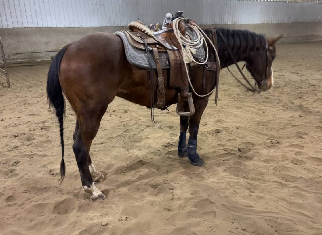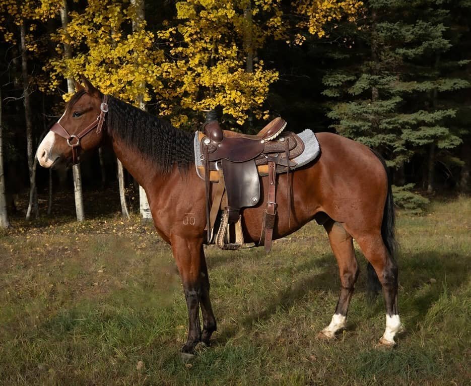 BUG IS A 2020 MODEL GELDING WHO STANDS 14.1HH. HE HAS IMPECCABLE GROUND MANNERS AND IS EXTREMELY EASY TO CATCH, LOAD, BATHE, TRIM/SHOE, AND JUST SIMPLY BE AROUND. BUG IS EXTREMELY GENTLE AND LOVES LOVE. WE HAVE USED THIS GELDING TO GATHER AND SORT CATTLE, CHECK PAIRS, RIDE FENCE AND A LITTLE ROPE WORK. HE TRACKS A HEEL-O-MATIC EXTREMELY WELL AND I BELIEVE IN THE RIGHT HANDS WOULD EXCEL AS A HEEL HORSE. HE HAS SEEN MILES IN THE HIGH COUNTRY AND A LOT OF HEAVY TIMBER COUNTRY. BUG CAN BE HANDLED AND TRAIL RODE BY ALMOST ANYONE WITH HORSE SENSE BUT WOULD BEST BE SUITED FOR AN INTERMEDIATE LEVEL RIDER WITH LIGHTER HANDS AND FEET WHEN IT’S TIME TO WORK, AS HE HAS A BIG MOTOR WHEN ASKED. WE TRULY LOVE THIS GELDING WHO HAS A STRONG PRESENCE, NICE CONFIRMATION, HEAD AND BIG HIP. HE WILL HAVE CLEAN HEALTH DOCUMENTATION, COGGINS TEST, SHOES, AND TEETH DONE FOR SALE DAY SO YOU CAN PURCHASE BUG WITH 100% CONFIDENCE.