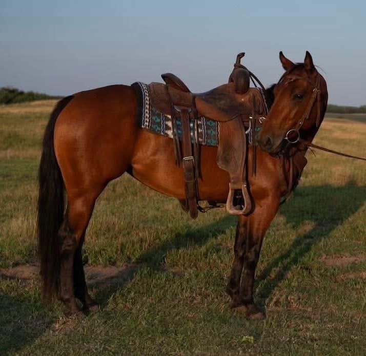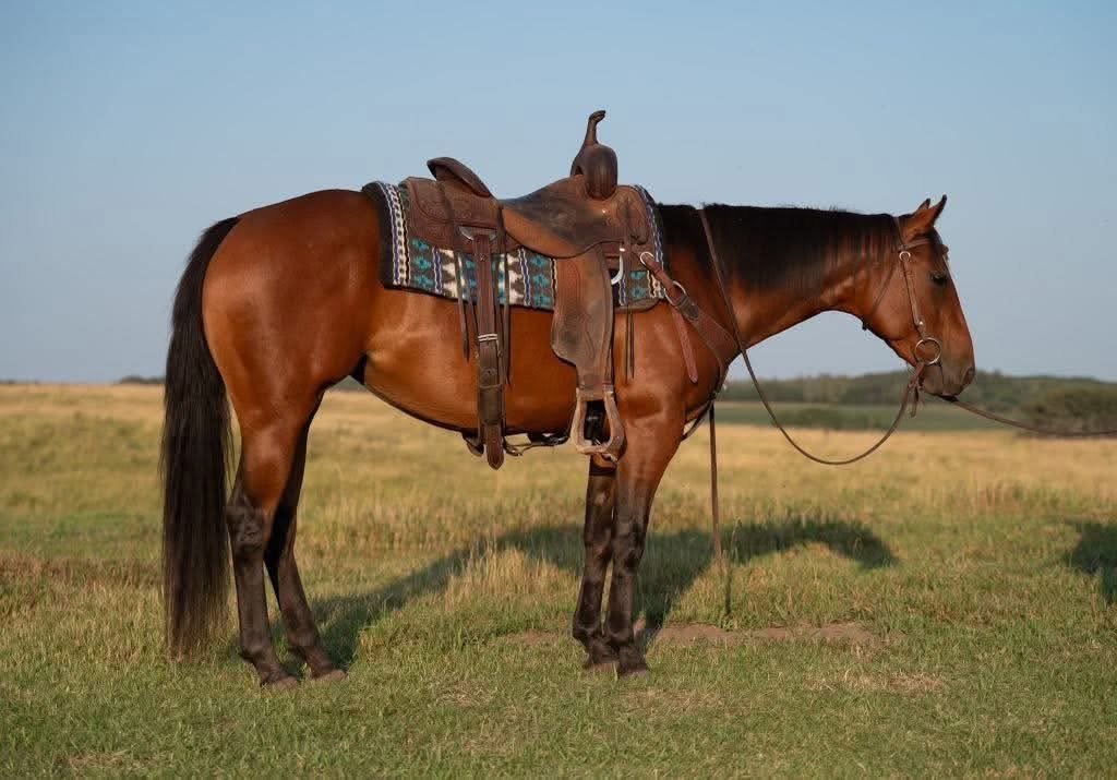 RAYNE IS A GRANDDAUGHTER OF TOPSAIL WHIZ ON THE TOP SIDE, NRHA’S FIRST $12 MILLION SIRE. LTE $49,865 IN NRHA WITH MULTIPLE OFFSPRING EARNING OVER $200,000. BOTTOM SIDE SHINERS LENA DUST, 2009 AQHA JUNIOR REINING CHAMPION. RAYNE HAD A 70 DAY START WITH A REINER WHEN I GOT HER. I RODE STEADY ALL FALL INCLUDING TRIPS TO DRAYTON VALLEY, CATTLE DRIVES AND LOADS OF TRAIL MILES! I RODE HER 5 DAYS A WEEK ALL WINTER AT AN INDOOR ARENA AND NOW SHE’S BACK HOME RIDING OUTSIDE, THROUGH THE MUD AND BUSH, DRAGGING YOUNG ONES. SHE’S WORKED THE FLAG, BEEN USED ON OBSTACLES, CATTLE DRIVES AND TRAIL RIDES-INCLUDING CROSSING BRIDGES AND RIVERS. SHE HAS ALL HER LATERAL WORK, INCLUDING SPINS, SLIDE STOPS, LEADS, HALF PASS, SIDE PASS ETC. SHE’S BRED TO BE AN ATHLETE AND THAT SHE IS. I’VE RECENTLY STARTED HER ON THE HEELOMATIC AND SHE TOOK TO IT IMMEDIATELY, HUNTING THE MACHINE WHENEVER IT’S BROUGHT INTO THE ARENA. SHE’S GREAT WITH THE ROPE. SHE WALKS QUIETLY INTO THE BOX AND WAITS PATIENTLY FOR HER CUE. I STARTED HER AT LIGHTLY ON LIVE CATTLE AND MY PLAN IS TO CONTINUE THAT ROPE WORK UNTIL IT’S HER FULL TIME JOB.