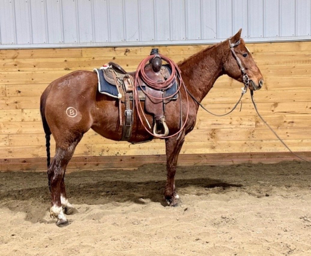 IF YOU ARE LOOKING FOR A HORSE THAT’S GRITTY ENOUGH FOR THE TOUGH JOBS AND FANCY ENOUGH FOR THE SHOW PEN, THEN OBR BUBBBA GUMP IS THE ONE FOR YOU!! THIS BEAUTIFUL GELDING HAS ALL THE FANCY MOVES TO TURN SOME HEADS. HE IS ELECTRIC ON A COW AND IS AS SOLID AS THEY COME! SIRED BY BUEN PISTOLERO WHO IS AN OWN SON OF THE LEGENDARY PLAYGUN AND OUT OF AN OWN DAUGHTER OF THE GREAT STALLION SMART LITTLE LENA! BUBBA HAS BEEN USED EXTENSIVELY IN THE FEEDLOTS, AUCTION MART AND OUT ON THE PASTURE. AS WELL AS BEING A MONEY WINNING TEAM PENNING AND SORTING HORSE! DON’T LET THIS GREAT GELDING PASS YOU BY. BUBBA IS CURRENTLY IN TRAINING WITH KENDAYL SIEBEN FROM KS RANCH.