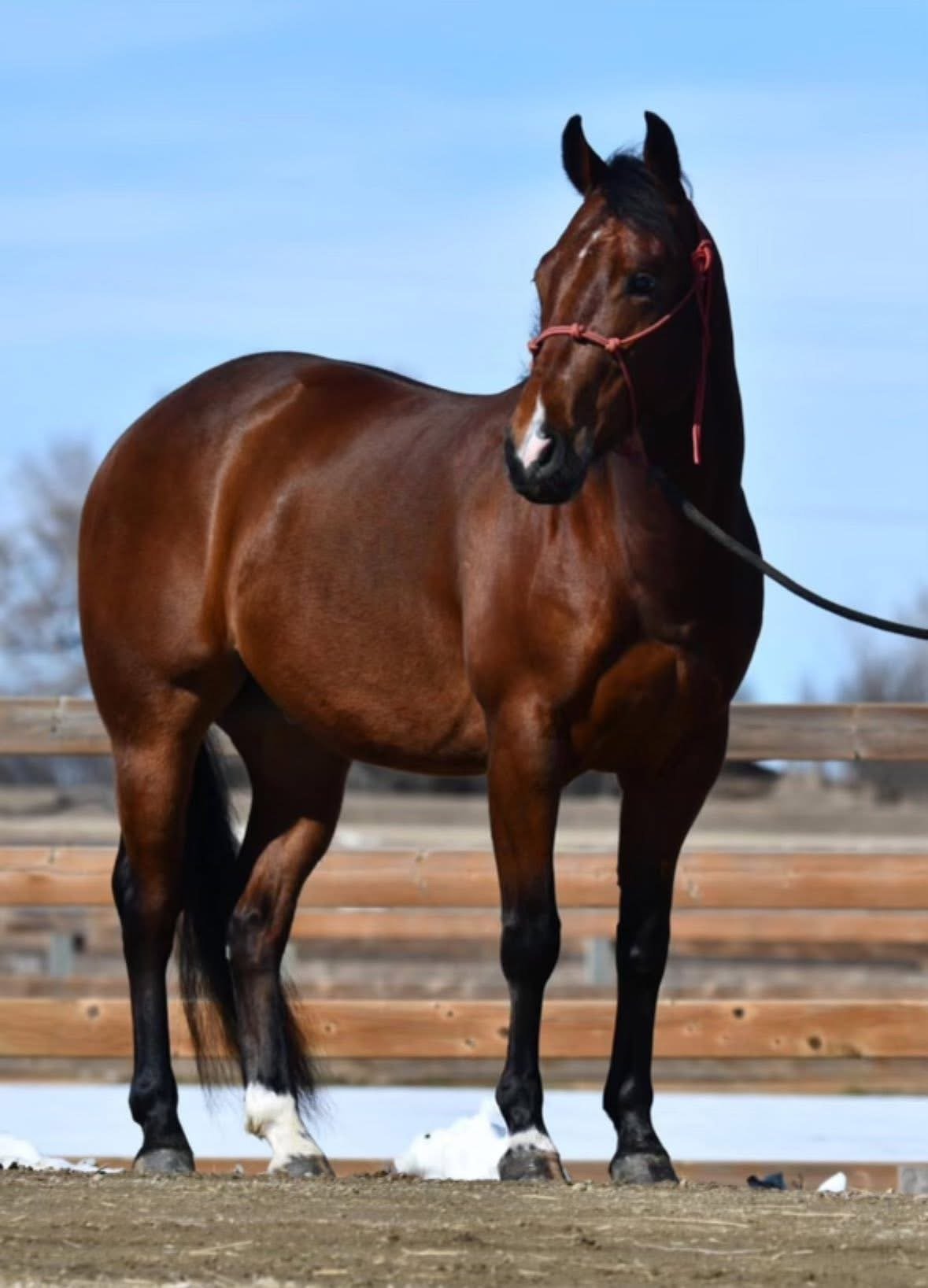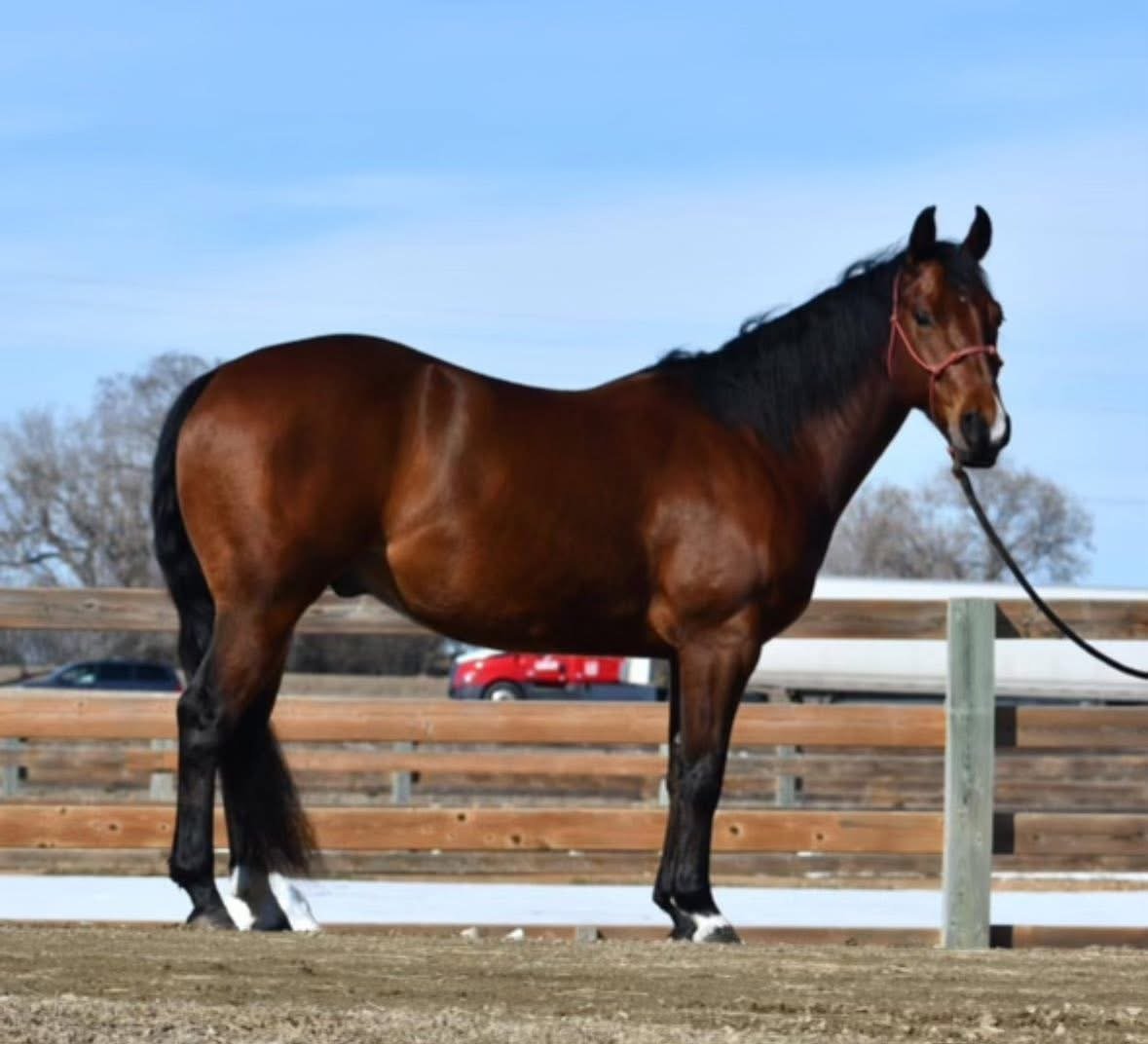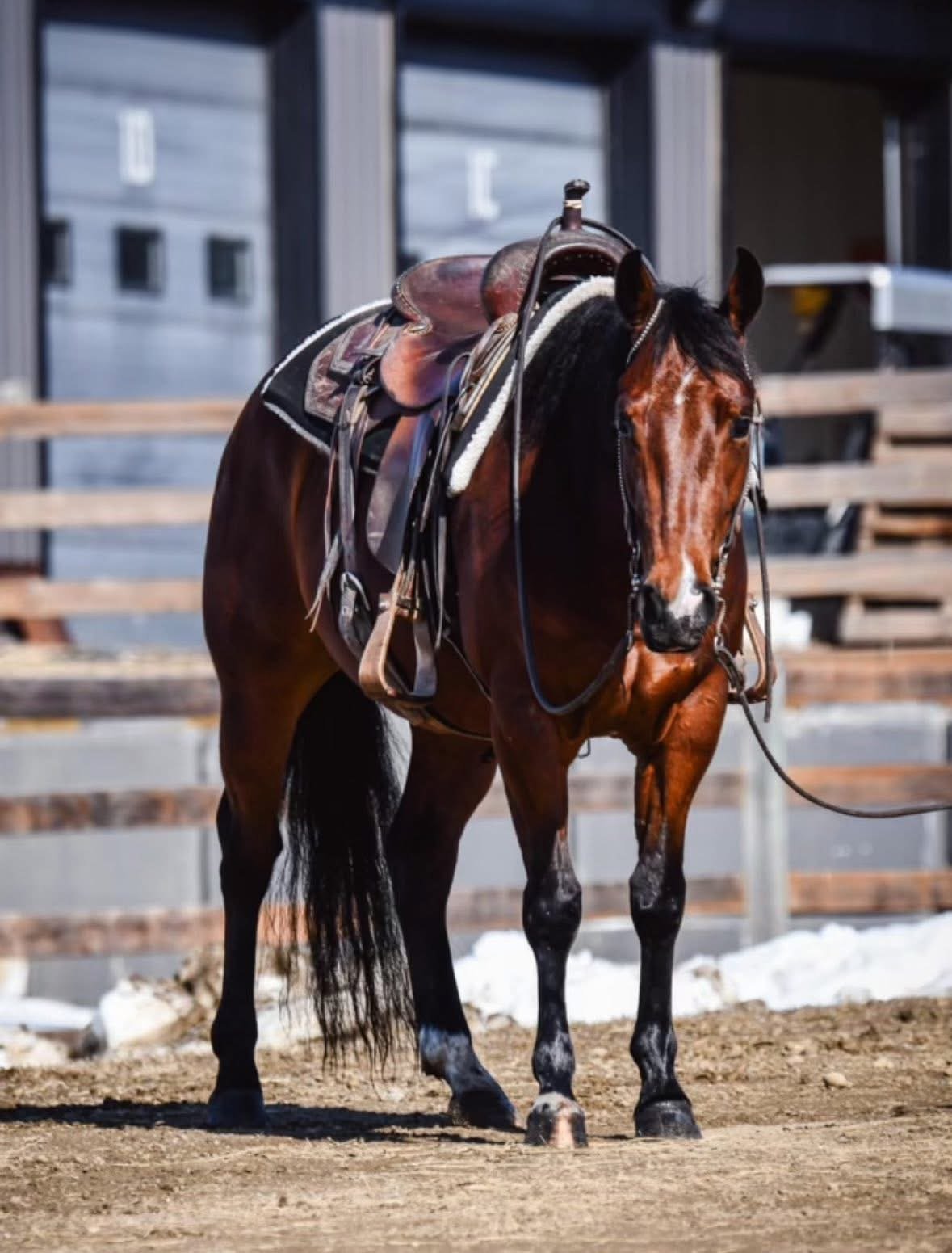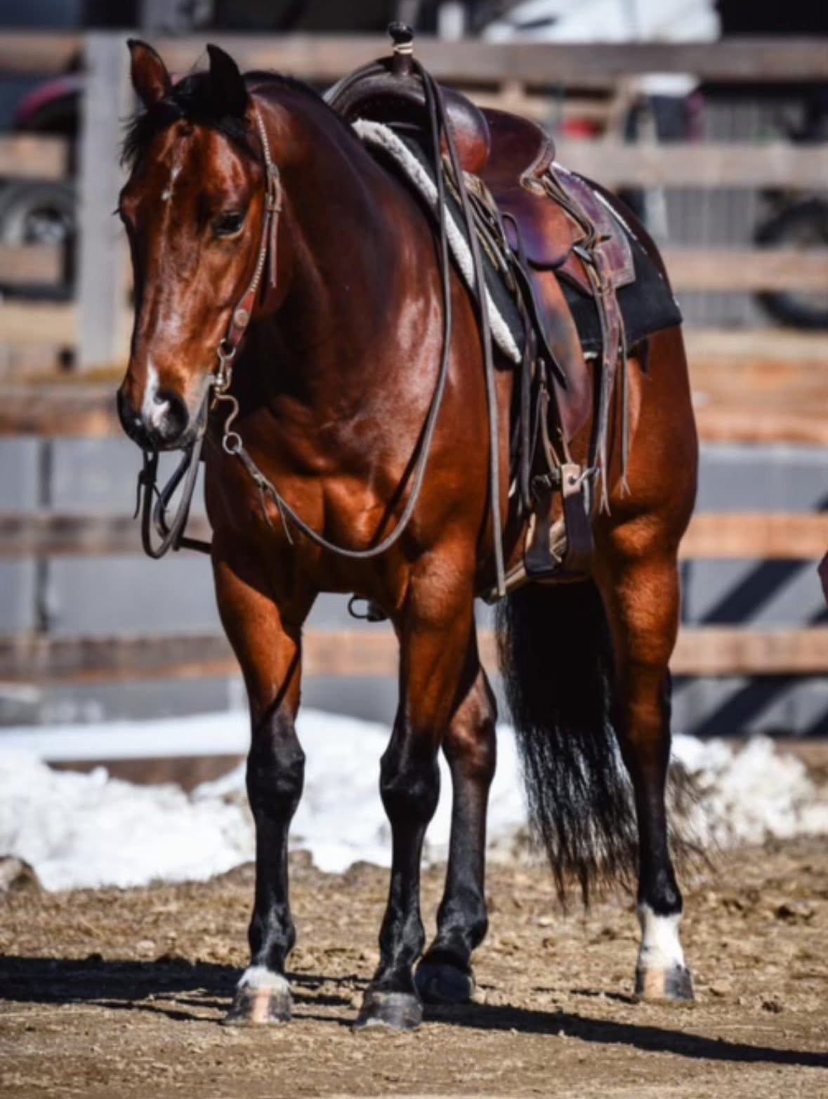 GOOD LOOKIN, DARK BAY WITH THE MIND, BUILD, AND PEDIGREE TO GO FAR. THIS FOUR YEAR-OLD GELDING IS SIRED BY CAUGHT ME LOOKIN (NCHA EARNINGS 133K) AND OUT OF STYLISH NATALIE (NCHA EARNER OF 26K) THIS COW HORSE DELUXE HAS A SOLID FOUNDATION. HE IS BROKE, LEVEL HEADED, AND READY TO CONFIDENTLY HEAD OUT IN ANY DIRECTION YOU CHOOSE. TONS OF POTENTIAL TO GO COWHORSE, HEEL HORSE, BREAKAWAY ROPE, PEN, SORT…. PICK ONE! THE KIND OF HORSE YOU LIKE TO RIDE. MOVES OUT WITH A LONG SMOOTH STRIDE, IS CONSISTENT, RESPECTFUL, WILLING AND HONEST. STANDS 14’2 IS SOUND, SANE AND IS UTD ON ALL VACCINES AND WORMING.