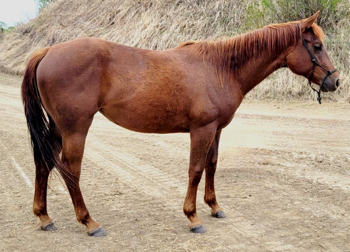 HANNA”. SHE STANDS 14.1 RIGHT NOW AND I EXPECT HER TO FINISH AT 14.3 – 15 HANDS. THIS FILLY COMES FROM A HERD THAT HAS PRODUCED MANY RANCH AND PERFORMANCE HORSES. THEY CAN BE FOUND ON; RANCHES, FEEDLOTS, RANCH RODEO, TEAM ROPING, BREAKAWAY ROPING, RUNNING, BARRELS, REINING AND PENNING COMPETITIONS. SHE HAS A GREAT MIND, EXCELLENT FEET AND LEGS. HER CONFIRMATION SPEAKS FOR ITSELF.