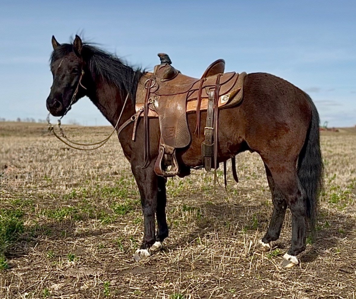MEET SNICKERS – THE REAL DEAL. A GRITTY, HARD-WORKING, AND RELIABLE PONY, SNICKERS IS THE KIND OF PARTNER EVERY YOUNG COWBOY DREAMS OF. THIS EXCEPTIONAL FOUR-YEAR-OLD GELDING STANDS 13 HANDS HIGH AND IS THE PERFECT MATCH FOR A CONFIDENT YOUNG RIDER WHO’S READY TO HAVE FUN AND GO PLACES. OVER THE PAST YEAR, SNICKERS HAS BEEN IN FULL-TIME TRAINING-BOTH IN THE ARENA AND OUT ON THE RANCH-AND HE’S TRULY FOUND HIS STRIDE. HE’S BEEN HAULED EXTENSIVELY ACROSS THE PROVINCE TO HIGH SCHOOL RODEOS, SORTINGS, AND GYMKHANAS, PROVING HIMSELF TO BE A STEADY, WILLING, AND VERSATILE MOUNT .SNICKERS IS READY TO BE A STEP-UP PONY FOR A CAPABLE YOUNG RIDER. BUILT LIKE A SMALL HORSE, WITH A STRONG WITHER, EXCELLENT BONE, AND A BIG HEART, HE’S TOUGH, DURABLE, AND GAME FOR JUST ABOUT ANYTHING YOU THROW HIS WAY. WITH HIS STAMINA, TRY, AND CAN- DO ATTITUDE, SNICKERS STANDS OUT IN ALL THE RIGHT WAYS. IF YOUR FAMILY’S READY TO PUT THIS PONY TO WORK AND LET HIM SHINE, DON’T MISS YOUR CHANCE TO MEET SNICKERS IN PERSON AT THE ELITE INVITATIONAL SALE IN RIMBEY ON JUNE 21ST.